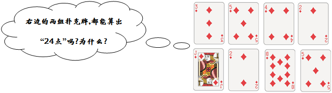 15.“24点”游戏规则:任抽4张牌,用各张牌上的数和加,减,乘,除四则运算(可用括号)列一个算式,先得计算结果为“24”者获胜(J,Q,K分别表示11,12,13,A表示1).