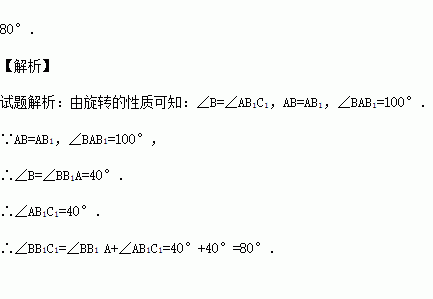 如图,将△ABC绕点A按逆时针方向旋转100°,得到△AB1C1,若点B1在线段BC的延长线上,则∠BB1C1的大小是__________度.