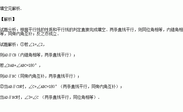 若∠DAB+∠ABC=1800,则 ∥ ( )