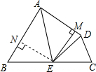 (2)过点E作EN⊥AB于点N,利用已知得出∠BAE=∠DEC,进而得出△ABE∽△ECD,利用相似三角形的性质求得出∠BAE=∠DAE,得出EN=EM,进而利用特殊角的三角函数值求出即可.