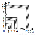 如图,将边长分别为1、2、3、4……19、20的正方形置于直角坐标系第一象限,如图中方式叠放,则按图示规律排列的所有阴影部分的面积之和为 .