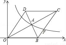 如图,在平面直角坐标系中,菱形OBCD的边OB在x轴上,反比例函数y=