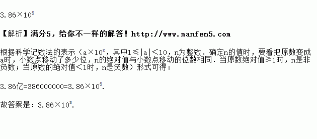 据国家旅游局数据中心综合测算,2018年春节全国共接待游客3.86亿人次,将“3.86亿”用科学计数法表示,可记为____________.