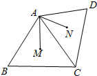 四边形ABCD中,∠B=60°,∠BCD=100°,∠D=70°,且M、N两点分别为△ABC及△ACD的内心,则∠MAN的度数为