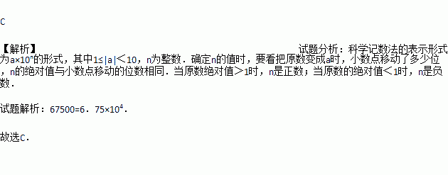 A. 675×102 B. 67.5×103 C. 6.75×104 D. 6.75×105