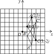 解答 解:(1)如图所示:△A′B′C′即为所求;(2)如图所示:点A′(2,-3)、B′(1,-1)、C′(3,2);(3)△ABC的面积为:2×5-$\frac{1}{2}$×1×5-$\frac{1}{2}$×1×2-$\frac{1}{2}$×2×3=3.5.故答案为:3.5.
