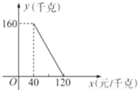 某商店以40元/千克的单价新进一批茶叶,经调查发现,在一段时间内,销售量 y(千克)与销售单价 x(元/千克)之间的函数关系如图所示