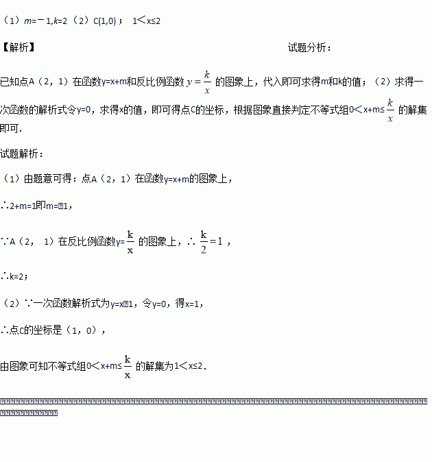 (2)求点C的坐标,并结合图象写出不等式组0<x+m≤