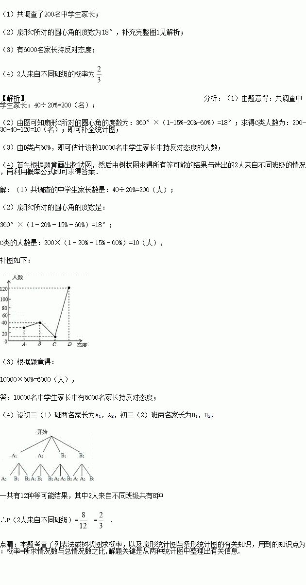 (3)根据抽样调查结果,请你估计1万名中学生家长中有多少名家长持反对态度;