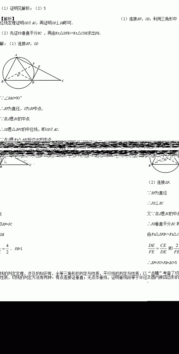 如图.点D是Rt△ABC斜边BC的中点,⊙O是△ABD的外接圆,交AC于点F. DE平分∠ADC,交AC于点E.