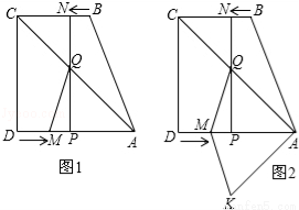 如图1,直角梯形ABCD中,AD∥BC,∠ADC=90°,AD=8,BC=6,点M从点D出发,以每秒2个单位长度的速度向点A运动,同时,点N从点B出发,以每秒1个单位长度的速度向点C运动.其中一个动点到达终点时,另一个动点也随之停止运动.过点N作NP⊥AD于点P,连接AC交NP于点Q,连接MQ.设运动时间为t秒.