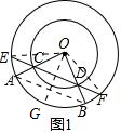 解答 (1)证明:如图1,接接AB,OE,OF,作OG⊥CD,