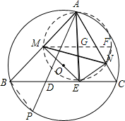 解答 解:如图所示,构造以AE为直径的圆G,作圆G的直径MF,连接NF、BP.![]()