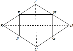 分析 根据菱形的性质得到AC⊥BD,根据三角形中位线定理得到EH∥BD,EH=$\frac{1}{2}$BD,FG∥BD,FG=$\frac{1}{2}$BD,得到四边形EFGH是平行四边形,根据平行线的性质证明EF⊥EH即可.