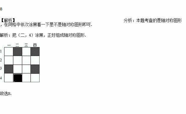如图,在4×4的正方形网格中,已有四个小正方形被涂黑.若将图中其余小正方形任意涂黑一个,使整个图案构成一个轴对称图形,则该小正方形的位置可以是( )