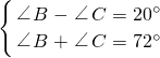 解答:∠B+∠C=180°-∠A=72°,