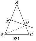 分析 根据题意画出图形,由DE是AB的中垂线,可得DE⊥AB,根据等腰三角形的性质可得∠ABC=∠C,又由AB的中垂线与AC所在的直线相交所得的锐角为60°,即可求得答案.