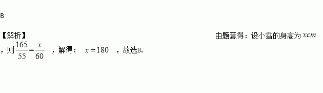 身高为165cm的小冰在中午时影长为55cm,小雪此时在同一地点的影长为60cm,那么小雪的身高为( )