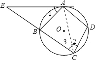 分析:(1)点A是弧BD的中点,根据弦切角定理和圆周角定理知∠1=∠3,由圆内接四边形的性质知∠ABE=∠D,于是有△ABE∽△CDA?