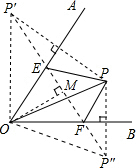 分析:作P关于OA的对称点,以及关于OB的对称点,连接两个对称点,交OA、OB分别于E、F,则此时△PEF的周长最小,进而求出△PEF的周长.