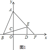 (2)由条件可证明△ABO≌△BED,可求得DE和BD的长,可求得E点坐标,再求得直线AE的解析式,可求得F点坐标;