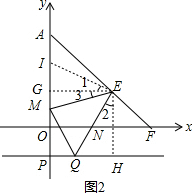 (3)过E作EG⊥OA,EH⊥PQ,垂足分别为G、H,在GA上截取GI=QH,如图2,![]()
