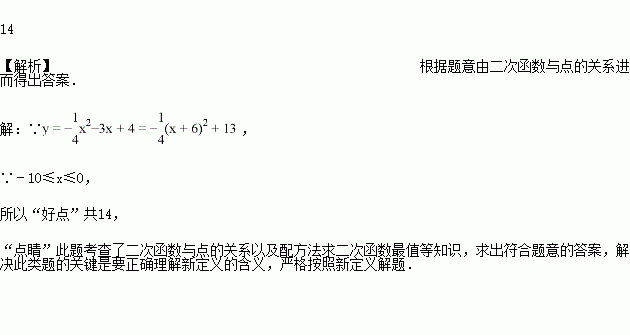 x2-3x+4(-10≤x≤0)的图象上有一动点P,点P的纵坐标为整数值时,记为“好点”,则有多个“好点”,其“好点”的个数为__________.