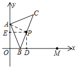 如图所示,当点B与点M重合时,过P作PD⊥x轴于D,作PE⊥y轴于E,连接OP,![]()