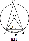 解:(1)如图1,过O作OD⊥AB,则AD=$\frac{1}{2}$AB=$\frac{1}{2}$×$\sqrt{3}$=$\frac{\sqrt{3}}{2}$.