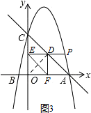 £¨3£©Á¬½ÓOD£¬Ò×µÃËıßÐÎOFDEÊǾØÐΣ¬ÔòOD=EF£¬¸ù¾Ý´¹Ïß¶Î×î¶Ì¿ÉµÃµ±OD¡ÍACʱ£¬OD£¨¼´EF£©×î¶Ì£¬È»ºóÖ»ÐèÇó³öµãDµÄ×Ý×ø±ê£¬¾Í¿ÉµÃµ½µãPµÄ×Ý×ø±ê£¬¾Í¿ÉÇó³öµãPµÄ×ø±ê£®