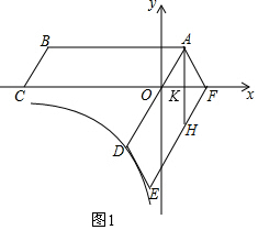 分析 (1)由旋转的性质可知AO=AF,且∠AOF=∠BAO,可证得△AOF为等边三角形,由题意可知A、D关于原点对称,则可求得OA的长,设AH交x轴于点K,则可中求得OK和AK的长,可求得A点坐标,代入反比例函数解析式可求得k的值;