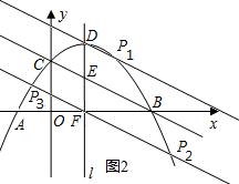 如图2所示,过点D作DP1∥BC,过点F作FP2∥BC,直线P2F交抛物线与点P3.![]()