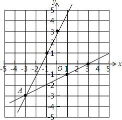 分析 先利用描点法画出一次函数y=2x+3和y=$\frac{1}{2}$x-$\frac{3}{2}$的图象,则可得到它们得交点A的坐标,然后根据函数图象交点坐标为两函数解析式组成的方程组的解得到方程组$\left\{\begin{array}{l}{2x-y+3=0}\\{\frac{1}{2}x-y-\frac{3}{2}=0}\end{array}\right.$的解.