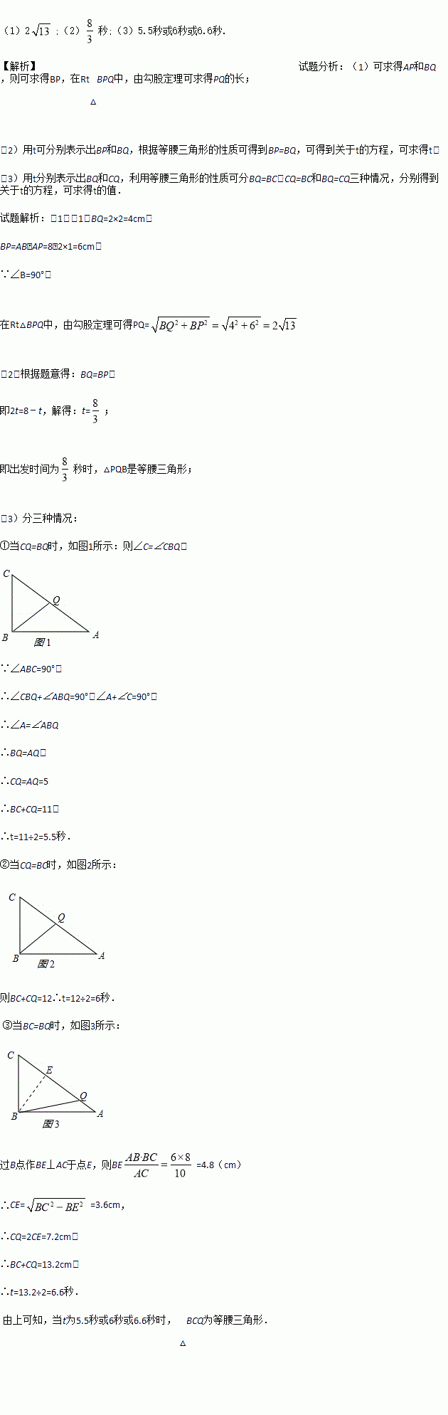 (2)求出发时间为几秒时,△PQB是等腰三角形?