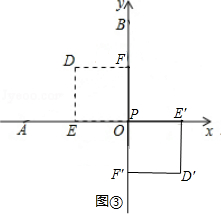 (3)直线AE′与直线BF′相交于点P,当点P在坐标轴上时,α=180°,P与O重合,易求出点E′、D′、F′的坐标.