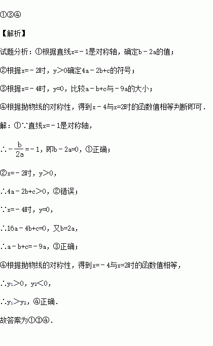 (2015秋•芜湖期末)如图是二次函数y=ax2+bx+c(a≠0)图象的一部分,x=﹣1是对称轴,有下列判断:①b﹣2a=0;②4a﹣2b+c<0;③a﹣b+c=﹣9a;④若(﹣3,y1),(3,y2)是抛物线上两点,则y1>y2,其中正确的序号是 .