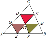分析 设阴影部分的三个三角形的边的交点为O,由DN∥GM∥AB,EG∥DF∥BC,FM∥EN∥AC,可得四边形CDON,DFBN,OFMN,AFMG,DGEO,OGEF,GEBM是平行四边形,继而可得图中阴影部分的三个三角形周长之和为:AB+BC+AC,则可求得答案.