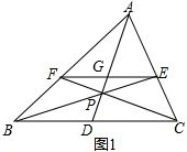 分析 (2)根据相似三角形的性质可得$\frac{FG}{BD}$=$\frac{AF}{AB}$,$\frac{AF}{AB}$=$\frac{FE}{BC}$,$\frac{FE}{BC}$=$\frac{PF}{PC}$,$\frac{PF}{PC}$=$\frac{FG}{DC}$,由此即可得到BD=CD;