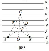 (3)解:①在直线c上取一点C,连接AC交直线e于点E,连接BC交直线e于点D,连接AD、BE,交于点F,