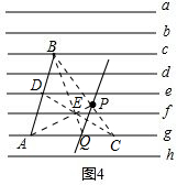 连接BE并延长,交直线g于点Q,过点P、Q作直线PQ,如图4,直线PQ即为所求作.![]()