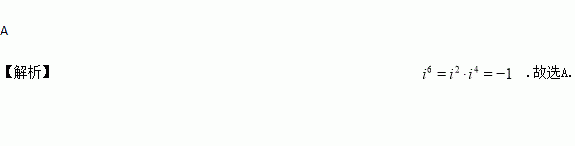 我们知道,一元二次方程x2=-1没有实数根,即不存在一个实数的平方等于-1,若我们规定一个新数“i ”,使其满足i2=-1(即方程x2=-1有一个根为i),并且进一步规定: 一切实数可以与新数进行四则运算,且原有的运算律和运算法则仍然成立,于是有i1=i,i2=-1,i3=i2·i=(-1)(-1)·i=-i,i4=(i2)2=(-1)2=1,从而对任意正整数n,则i6=( )