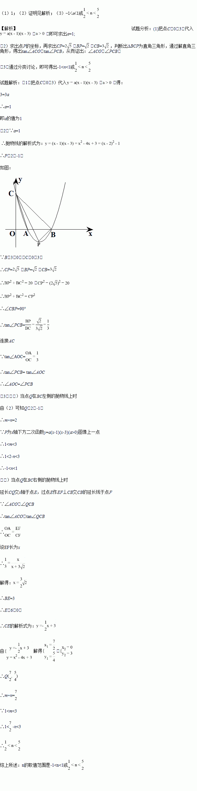 )的图像与x轴交于A、B两点(A左B右),与y轴交于C点(0,3).P为x轴下方二次函数