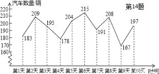 为了解某一路口某一时段的汽车流量,小明同学10天中在同一时段统计通过该路口的汽车数量(单位:辆),将统计结果绘制成如下折线统计图: