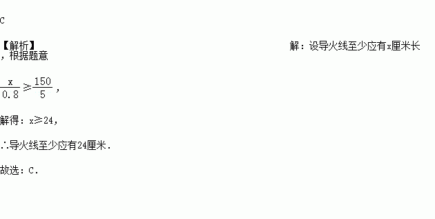 导火线的燃烧速度为0.8cm/s,爆破员点燃后跑开的速度为5m/s,为了点火后能够跑到150m外的安全地带,导火线的长度至少是( )