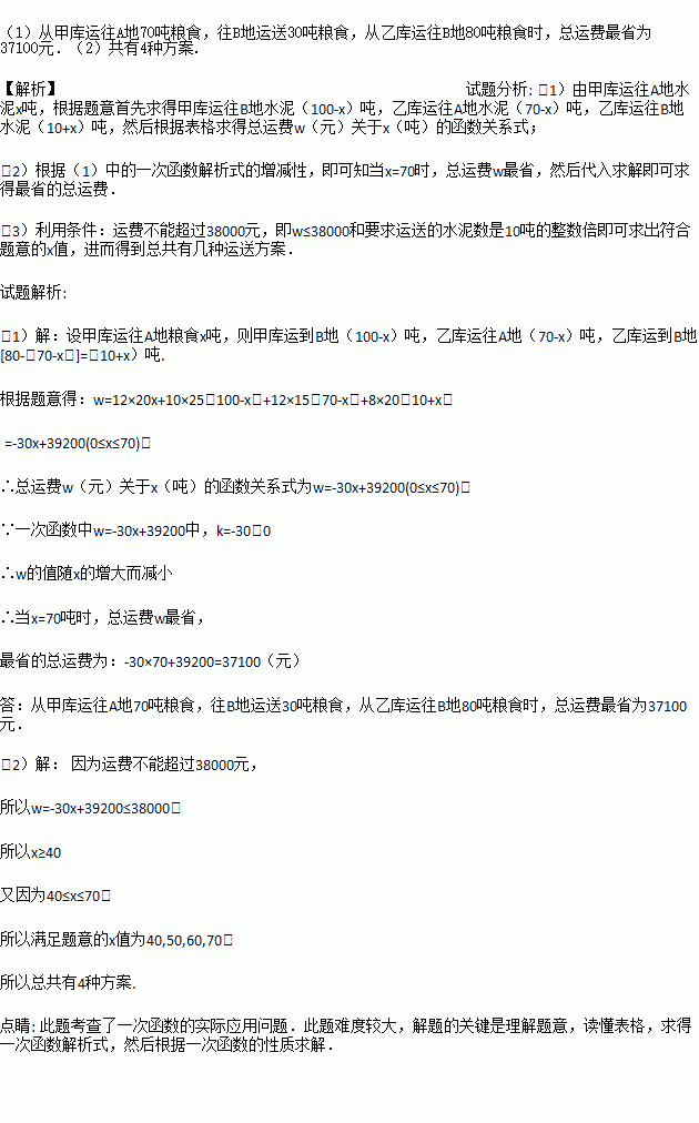 ¼×¡¢ÒÒÁ½¸ö²Ö¿âÏòA¡¢BÁ½µØÔËËÍË®Ä࣬ÒÑÖª¼×¿â¿Éµ÷³ö100¶ÖË®Ä࣬ÒÒ¿â¿Éµ÷³ö80¶ÖË®Ä࣬AµØÐè70¶Ö£¬BµØÐè110¶ÖË®Ä࣬Á½¿âµ½A£¬BÁ½µØµÄ·³ÌºÍ·ÑÓÃÈçÏÂ±í£º£¨±íÖÐÔË·Ñ¡°Ôª/¶Ö¡¤Ç§Ãס±±íʾÿ¶ÖË®ÄàÔËËÍ1ǧÃ×ËùÐèÒªÈËÃñ±Ò£©.