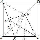 分析 如图,过F作FI⊥BC于I,连接FE,FA,得到FI∥CD,设BE=EI=IC=a,CE=FI=2a,AB=3a,由勾股定理得到FE=FC=FA=$\sqrt{5}$a,推出HE=$\frac{1}{2}$AE=$\frac{\sqrt{10}a}{2}$,根据正方形的性得到BG平分∠ABC,由三角形角平分线定理得到$\frac{EG}{AG}=\frac{BE}{AB}$=$\frac{1}{3}$,求得HG=$\frac{1}{4}$AE=$\frac{\sqrt{10}}{4}$a=2,于是得到结论.