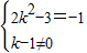 【答案】分析:根据反比例函数的定义.即y=(k≠0),只需令2k2-3=-1、k-1≠0即可.