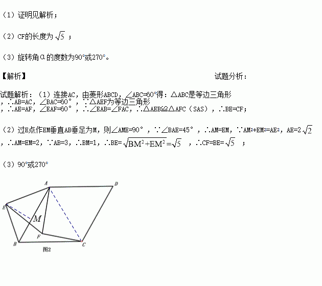 已知如图1菱形ABCD,∠ABC=60o,边长为3,在菱形内作等边三角形△AEF,边长为