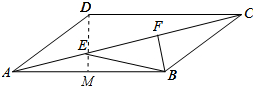分析 作DM⊥AB于M,则∠AMD=90°,先求出DM=$\frac{1}{2}$AD=3,求出平行四边形ABCD的面积,得出△ABC的面积,得出△BEF的面积=$\frac{1}{3}$△ABC的面积.