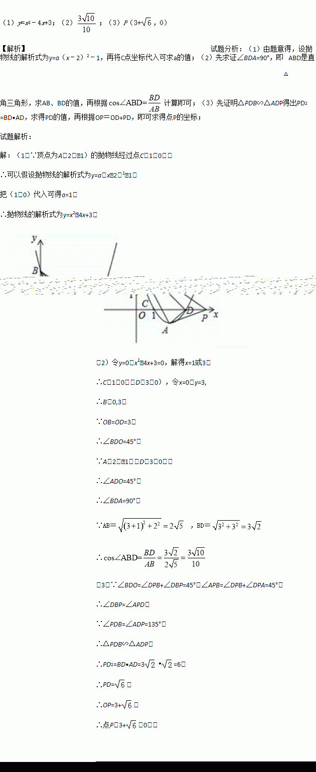 (3)点P在x轴正半轴上位于点D的右侧,如果∠APB=45°,求点P的坐标.
